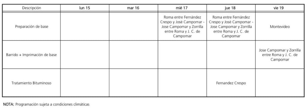 A través de la información que le proporcionó la Empresa TEYMA y sujeto a cambios por condiciones climáticas, el Municipio de Juan Lacaze informa que durante los próximos días se realizarán las siguientes tareas en el marco de la obra de Saneamiento que OSE realiza en Juan Lacaze.