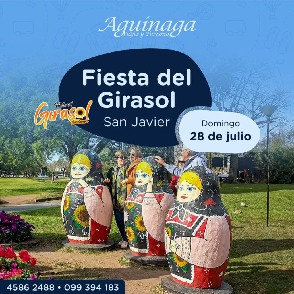 Aguinaga Viajes y Turismo te invita a viajar a La Fiesta del Girasol en San Javier el Domingo 28 de Julio. Reservá tu lugar por el 4586 2488 y 099 394 183.